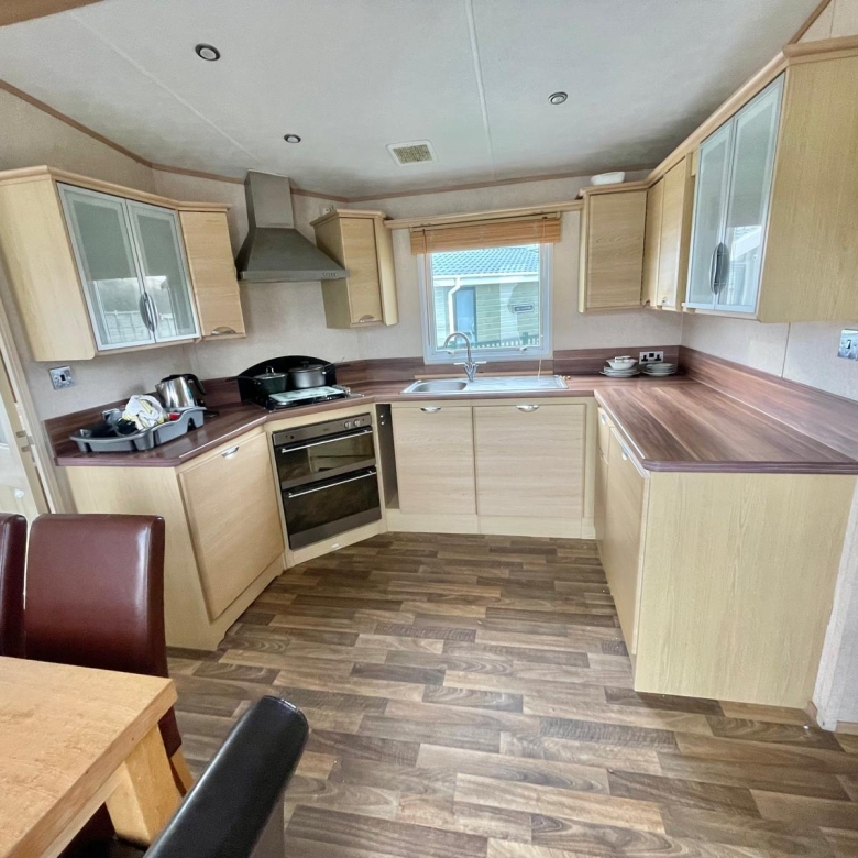 La cocina es amplia y funcional, con espacio suficiente para almacenamiento y una circulación cómoda, ideal tanto para estancias largas como para uso habitual.