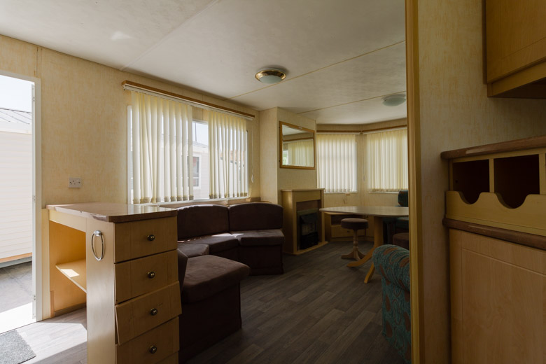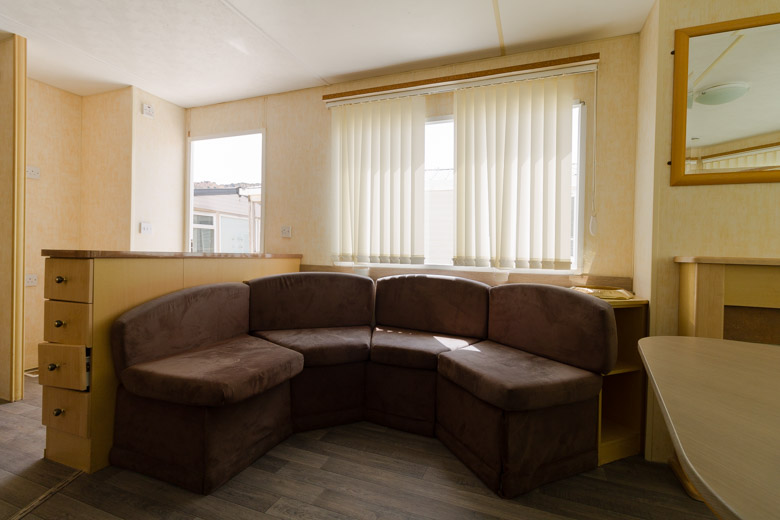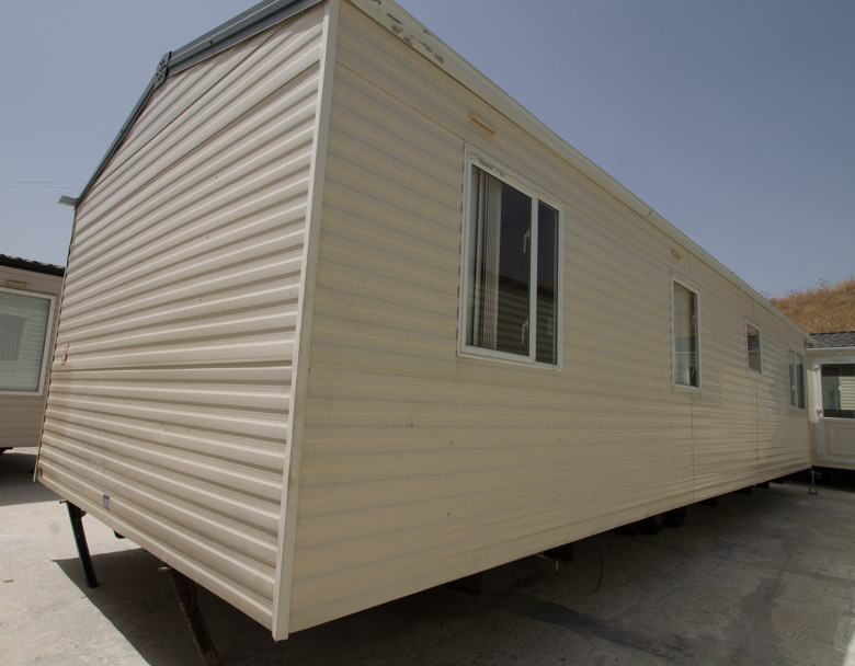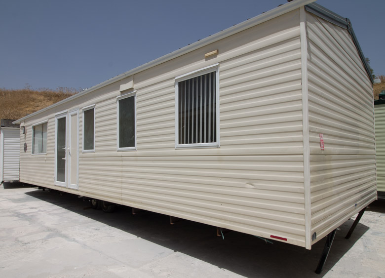 Bonita mobil home residencial marca BK, modelo Parkstone, con una superficie de 44 m². Cuenta con techo a dos aguas en su interior y ventanas de PVC con doble cristal.