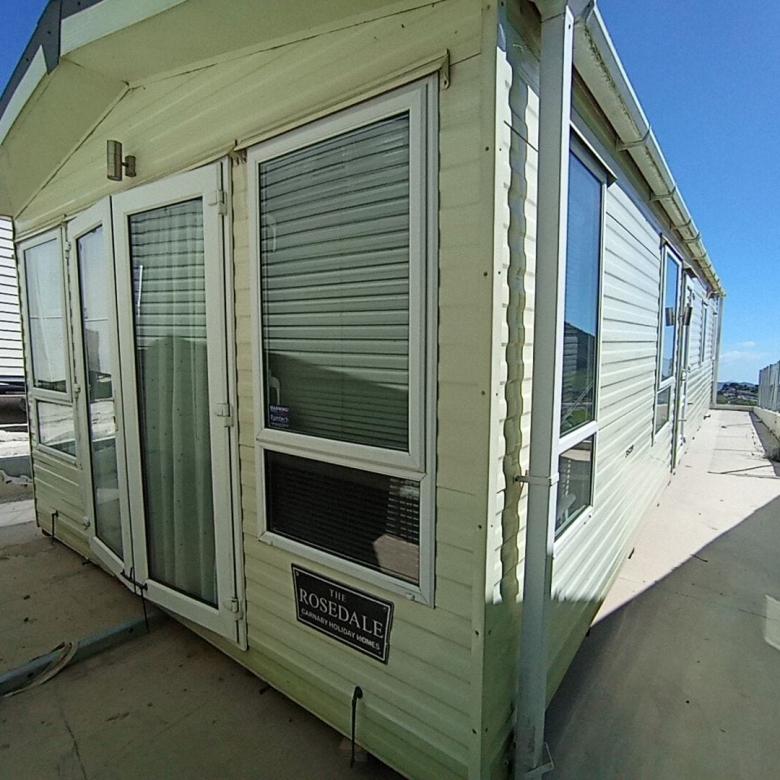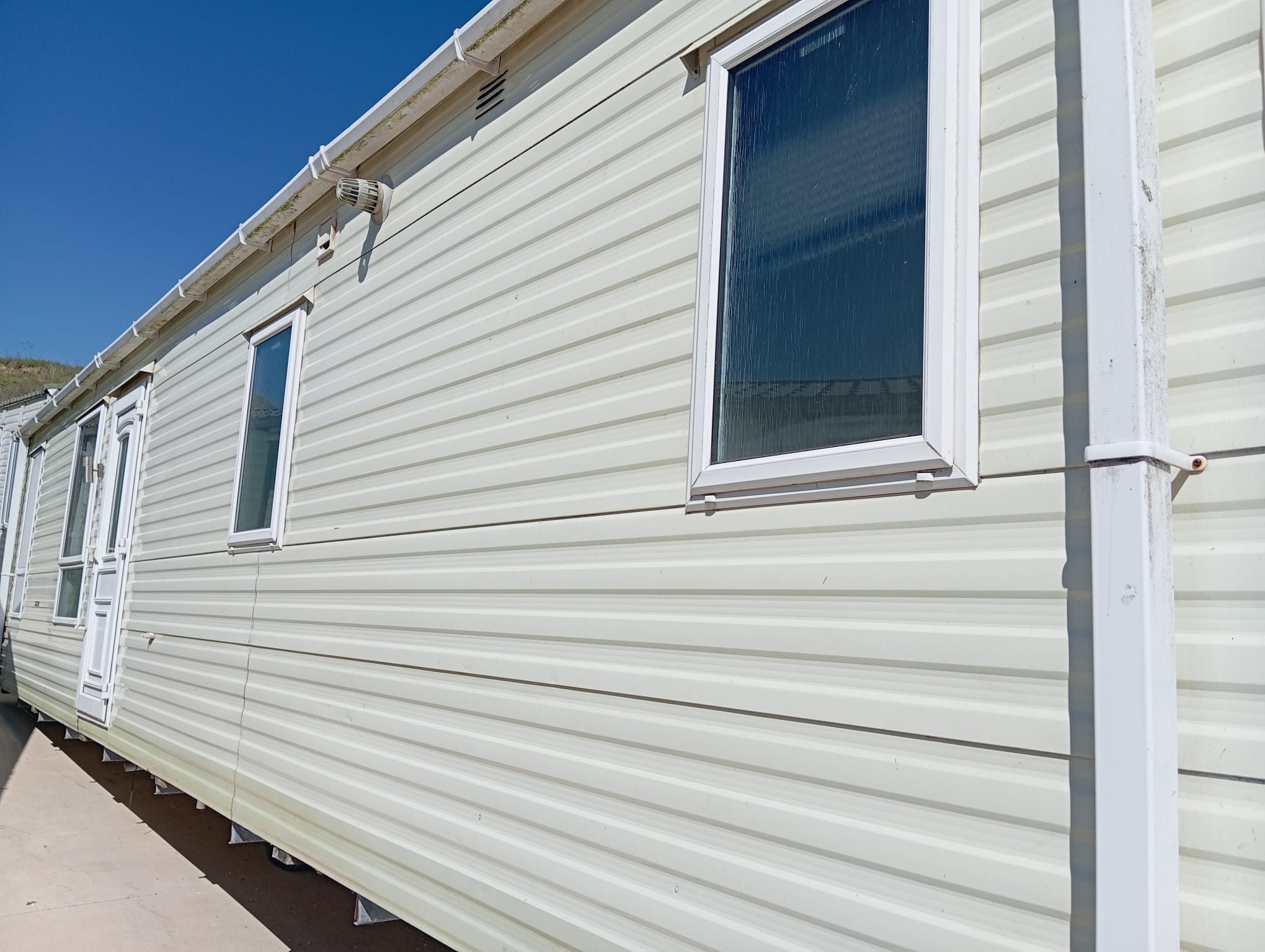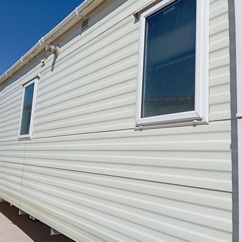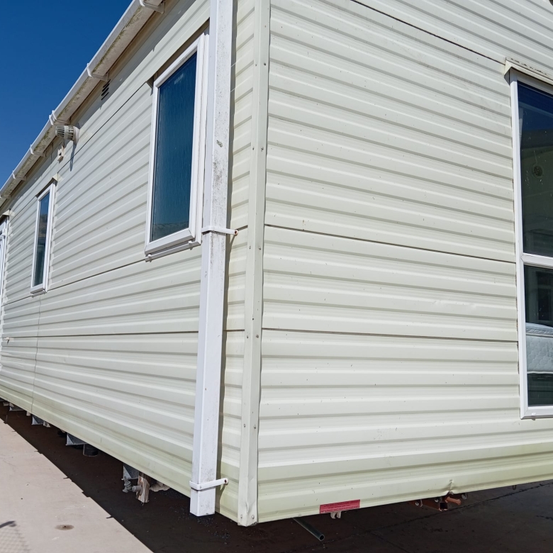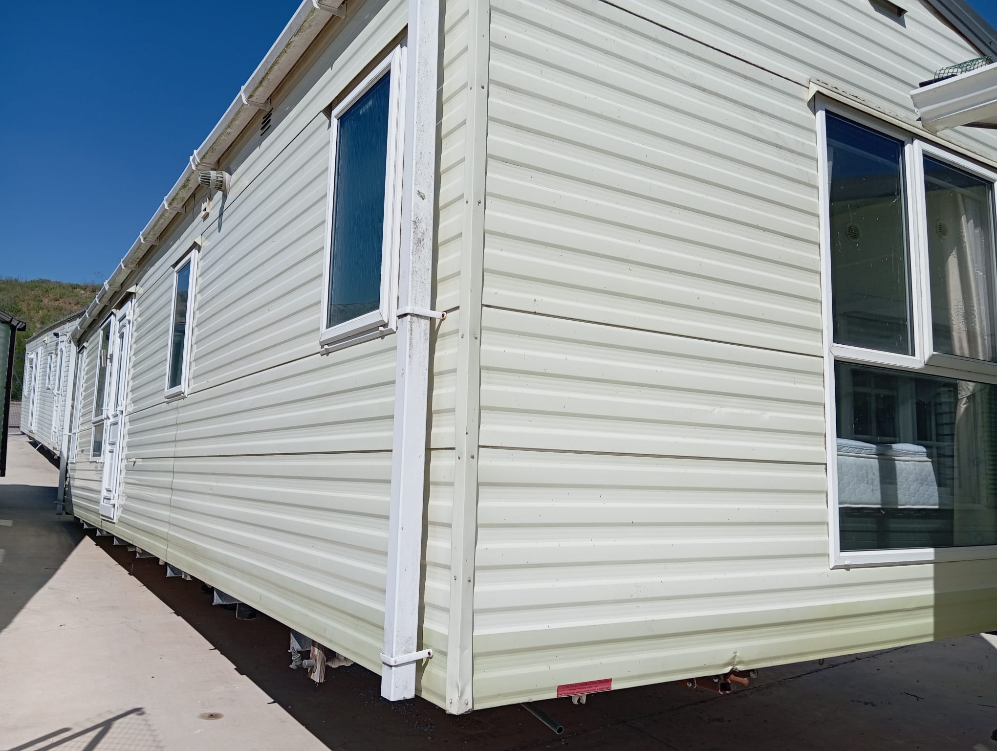 Bonita mobil home residencial mod. Carnaby Rosedale, con una superficie de 42.64 m². Cuenta con techo a dos aguas en su interior y ventanas de PVC con doble cristal.