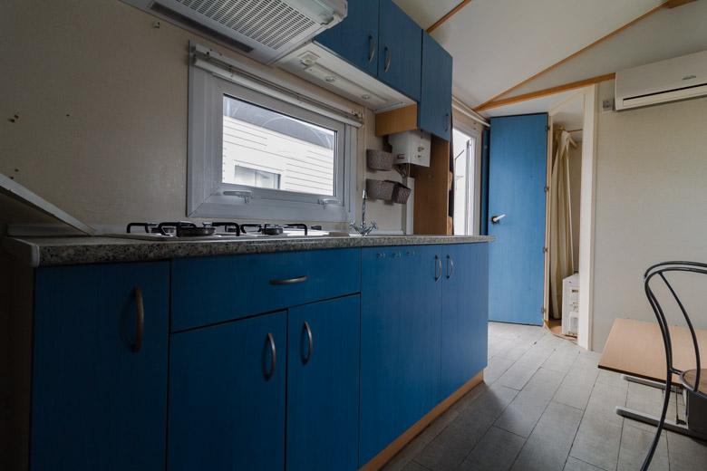 La cocina integrada cuenta con área de cocinado, armarios superiores e inferiores y hueco para electrodomésticos, adaptándose sin dificultad al uso diario.