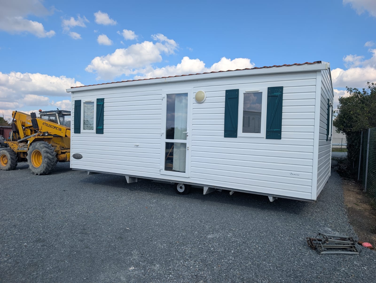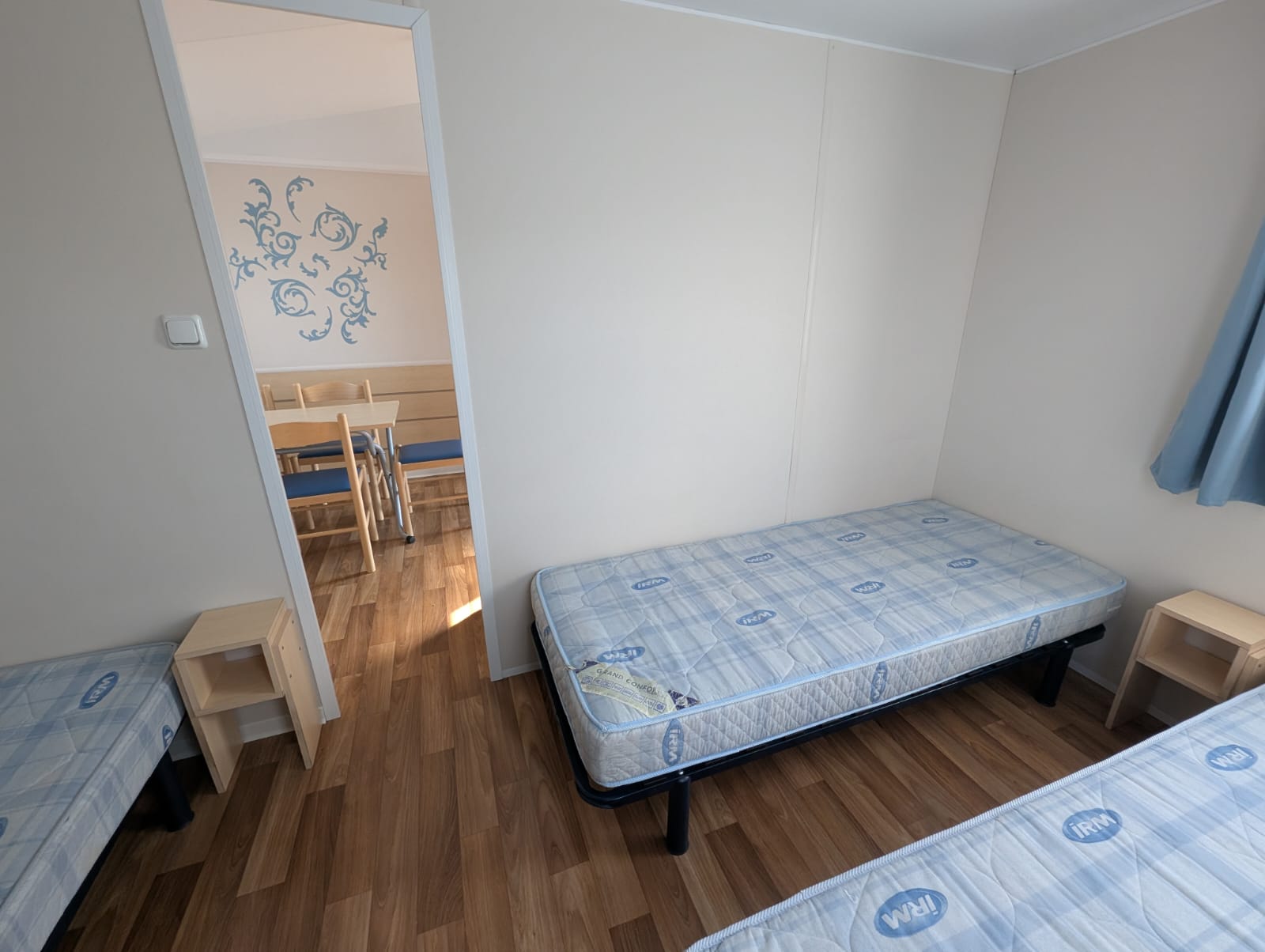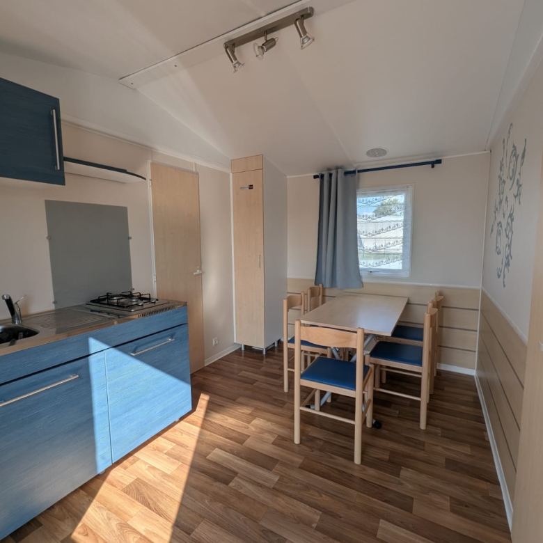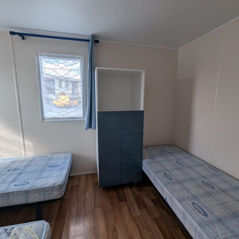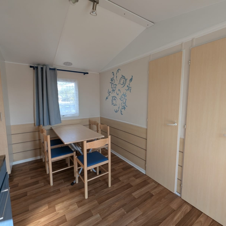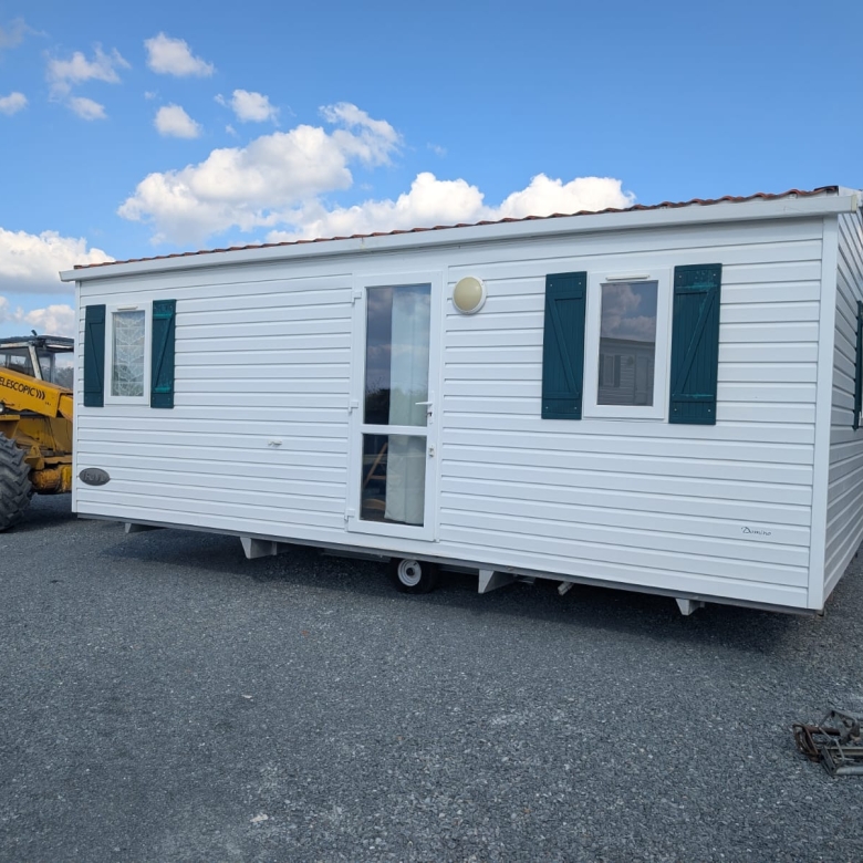 Práctica mobil home residencial marca IRM, modelo Domino, con unas dimensiones de 6,70 x 4 m. Su diseño compacto aprovecha cada metro cuadrado para ofrecer estancias cómodas y bien distribuidas.