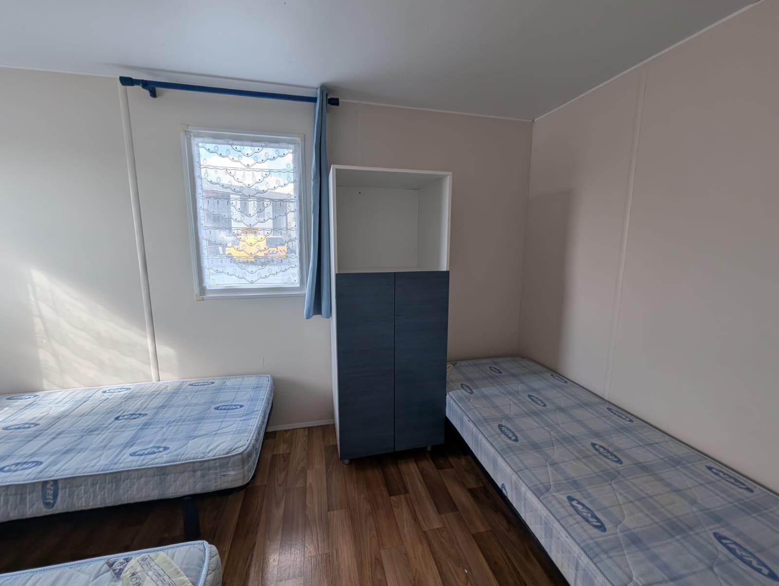 • El segundo dormitorio, equipado con cama de matrimonio y armario para almacenamiento.