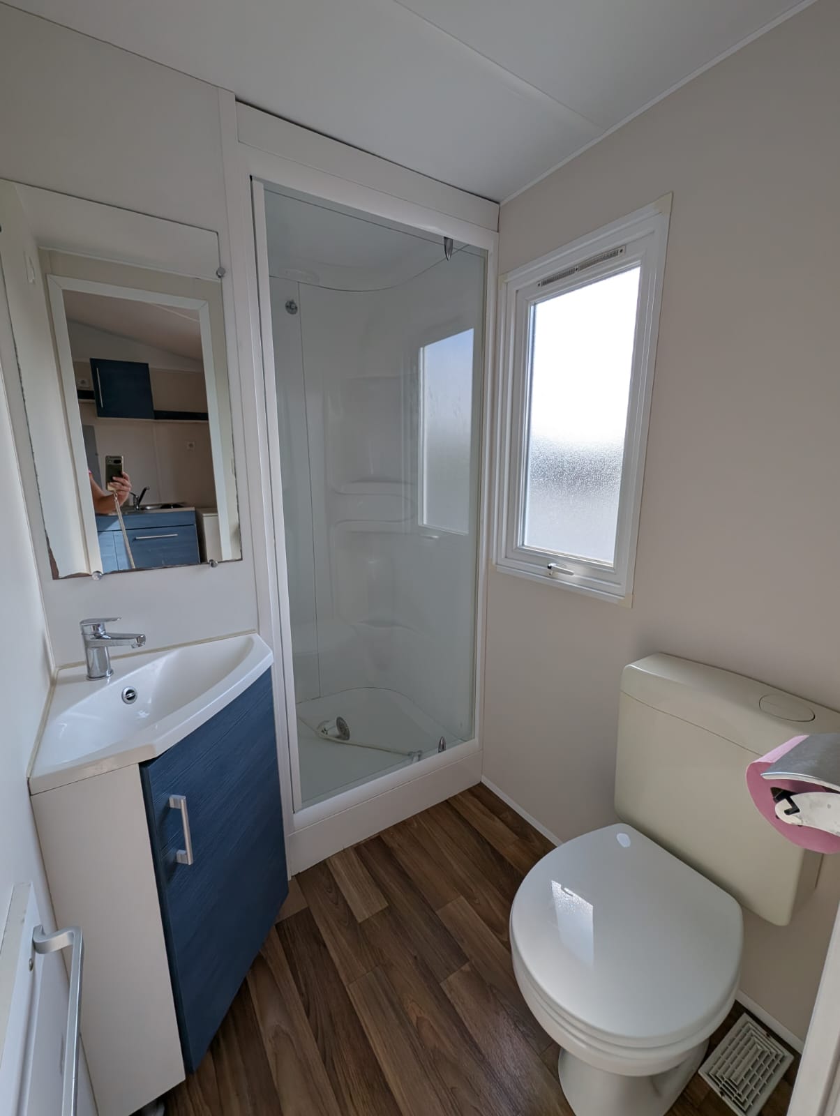 El área de aseo incluye un baño con ducha y WC en la misma estancia, aportando practicidad en un único espacio bien distribuido.