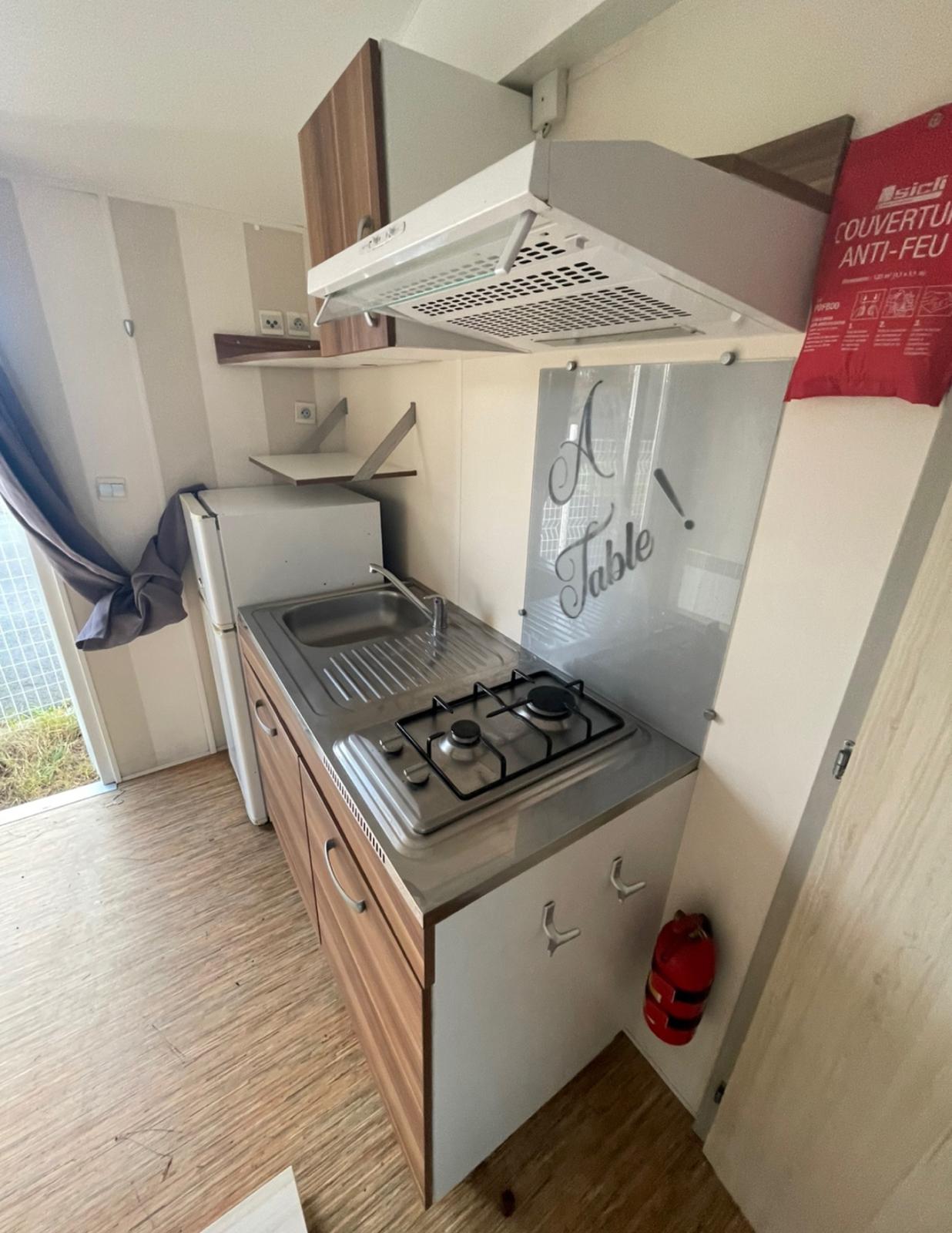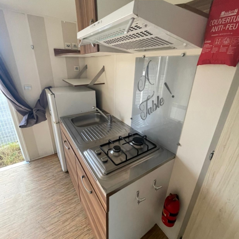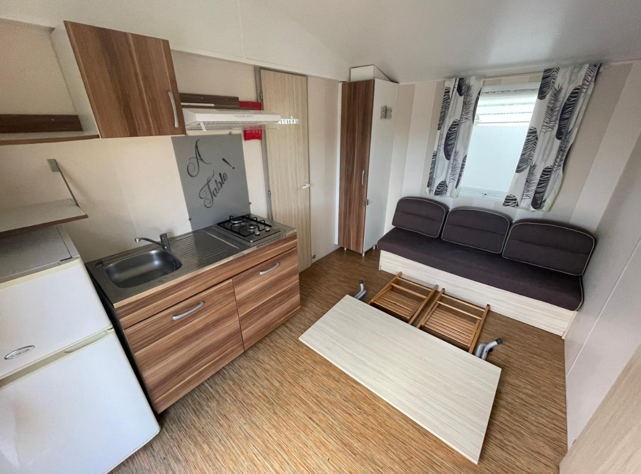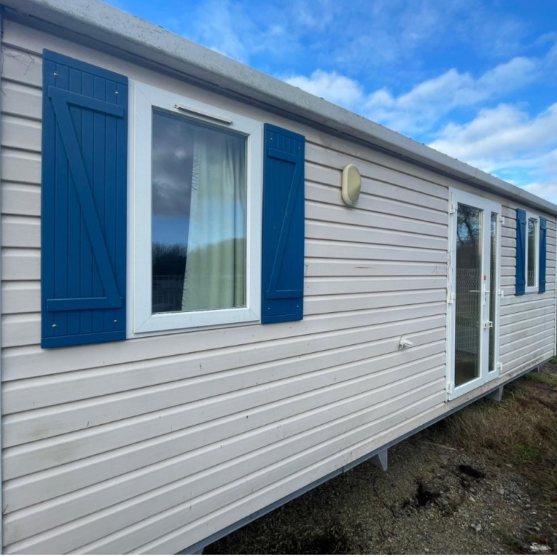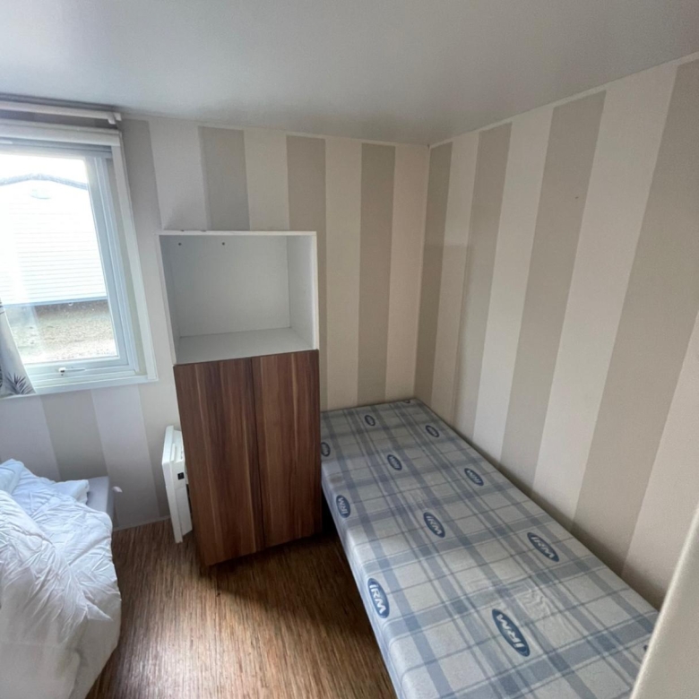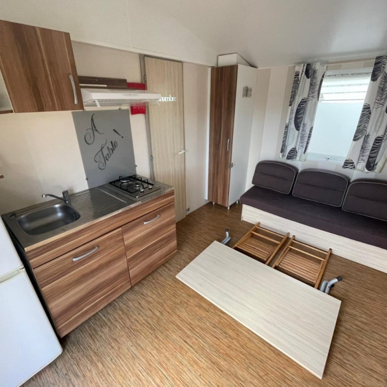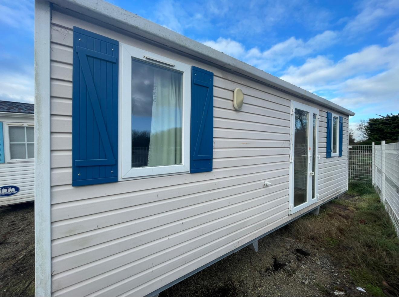 Práctica mobil home residencial marca IRM, modelo Domino, con unas dimensiones de 6,70 x 4 m. Su diseño compacto aprovecha cada metro cuadrado para ofrecer estancias cómodas y bien distribuidas.