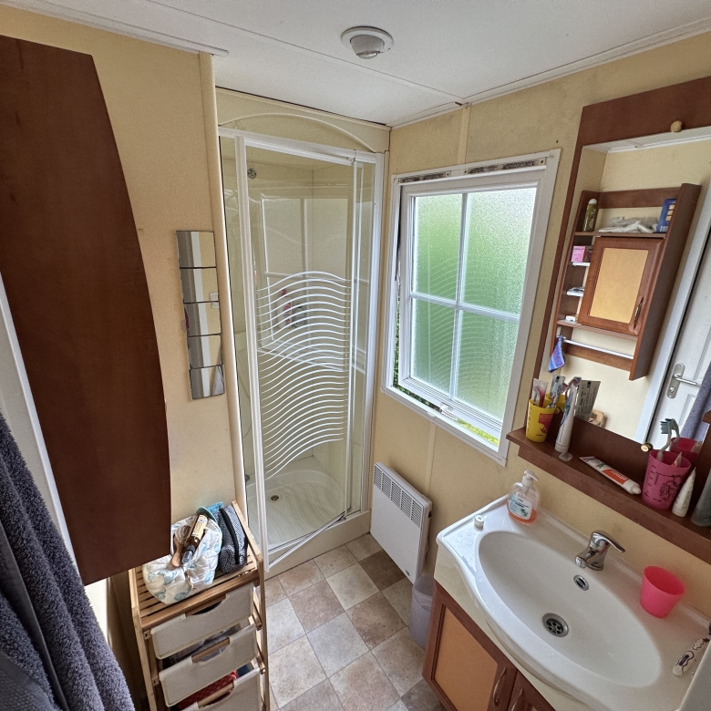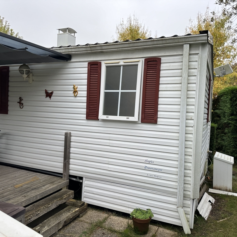 Bonita mobil home modelo Rubis Panoramic, con unas dimensiones de 9,8 x 4 m, que ofrecen una superficie de 39,2 m². Su diseño destaca por su ventana panorámica, que aporta una excelente entrada de luz natural, creando un ambiente agradable y bien ventilado.