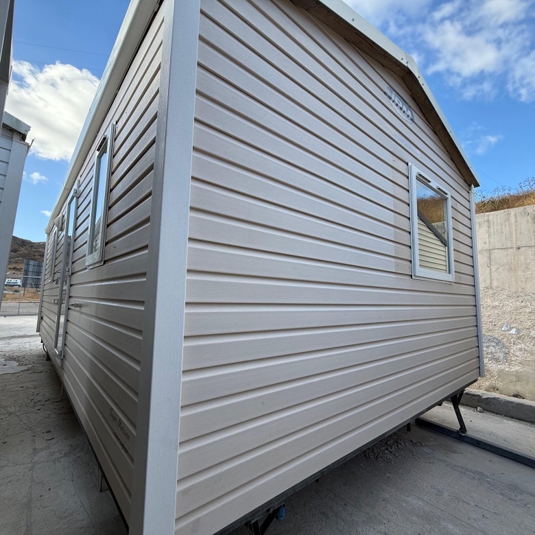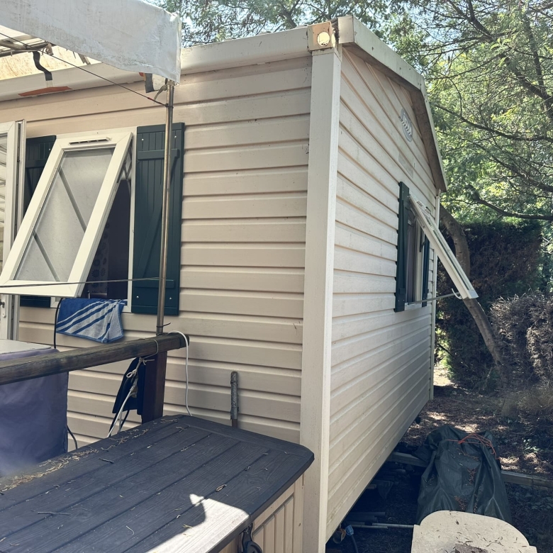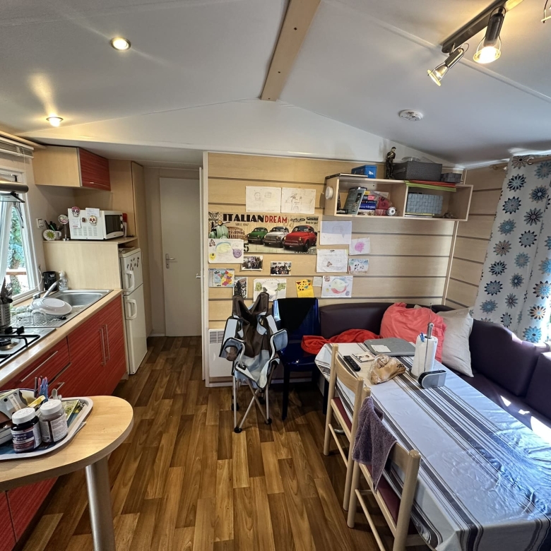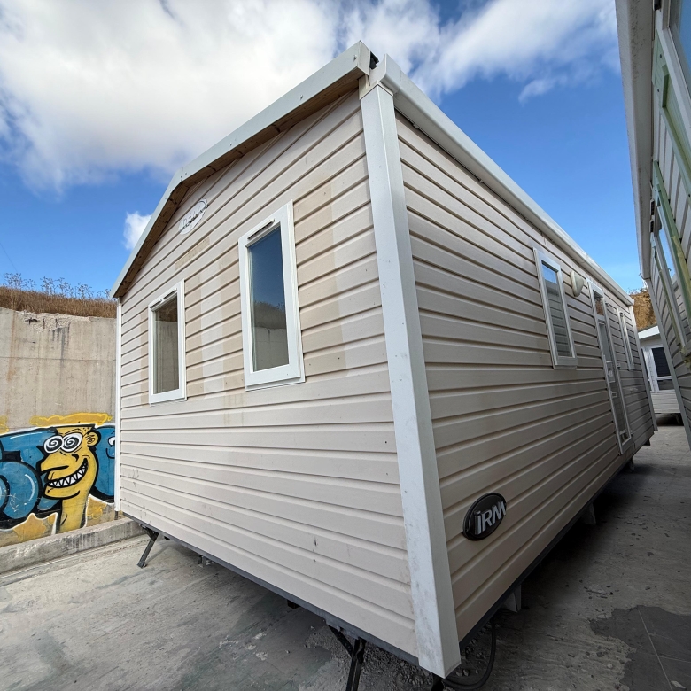 Acogedora mobil home residencial marca IRM, modelo Super Mercure, con una superficie de 29,2 m². Su distribución práctica aprovecha cada metro para ofrecer comodidad y funcionalidad en un formato compacto.