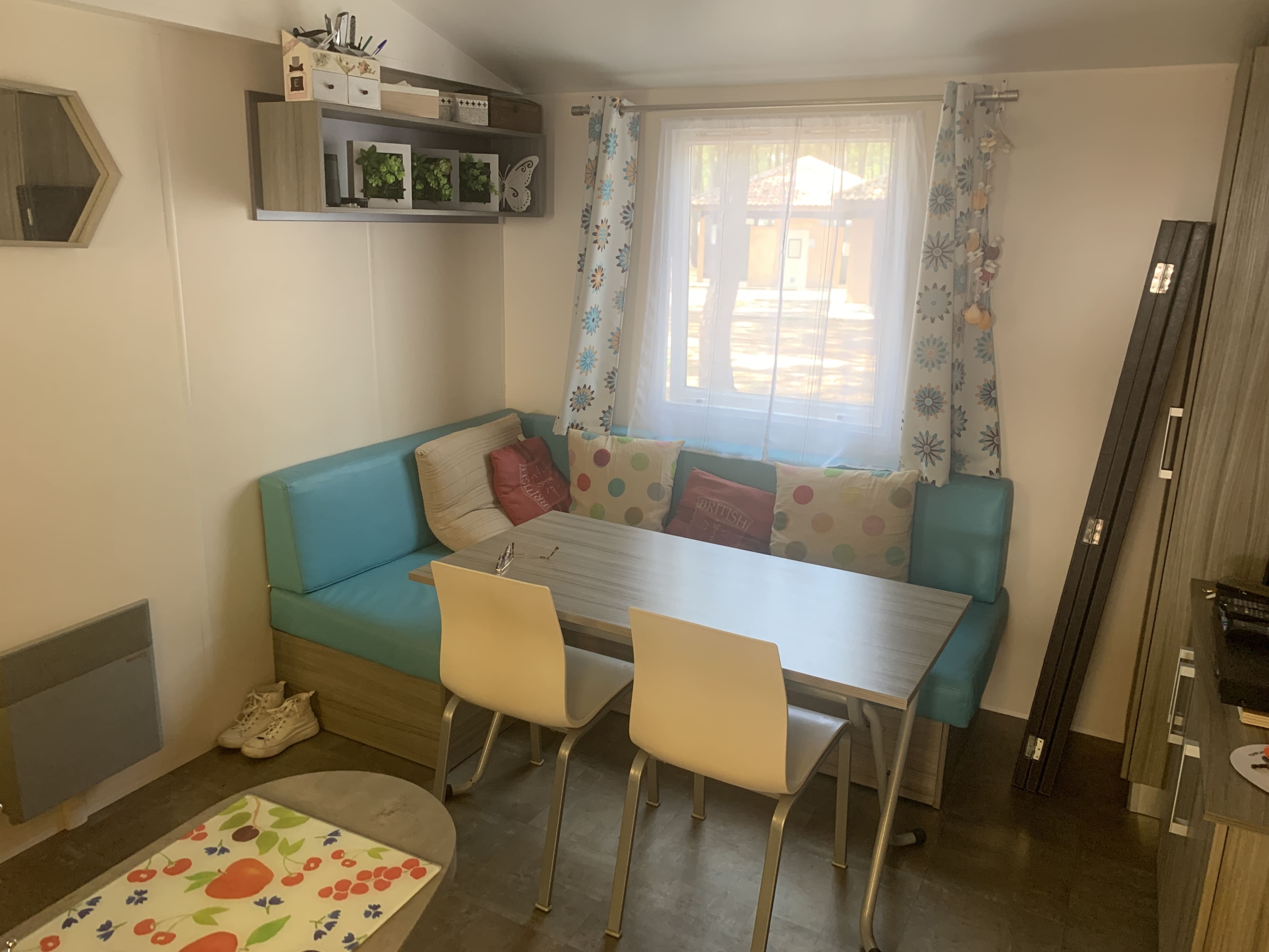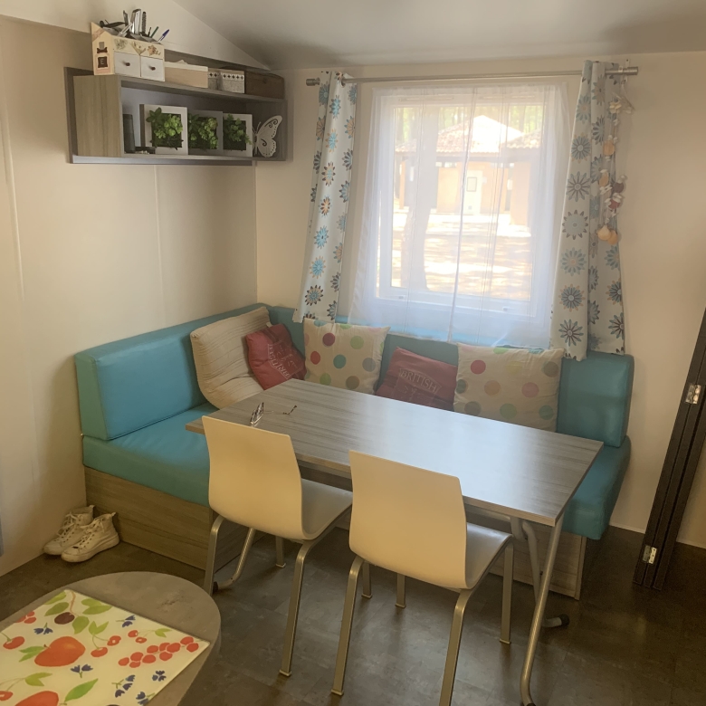 Acogedora mobil home residencial marca IRM, modelo Super Mercure, con una superficie de 29,2 m². Su distribución práctica aprovecha cada metro para ofrecer comodidad y funcionalidad en un formato compacto.