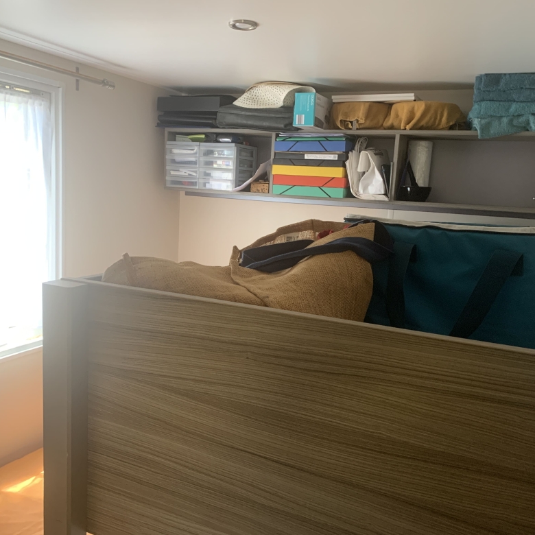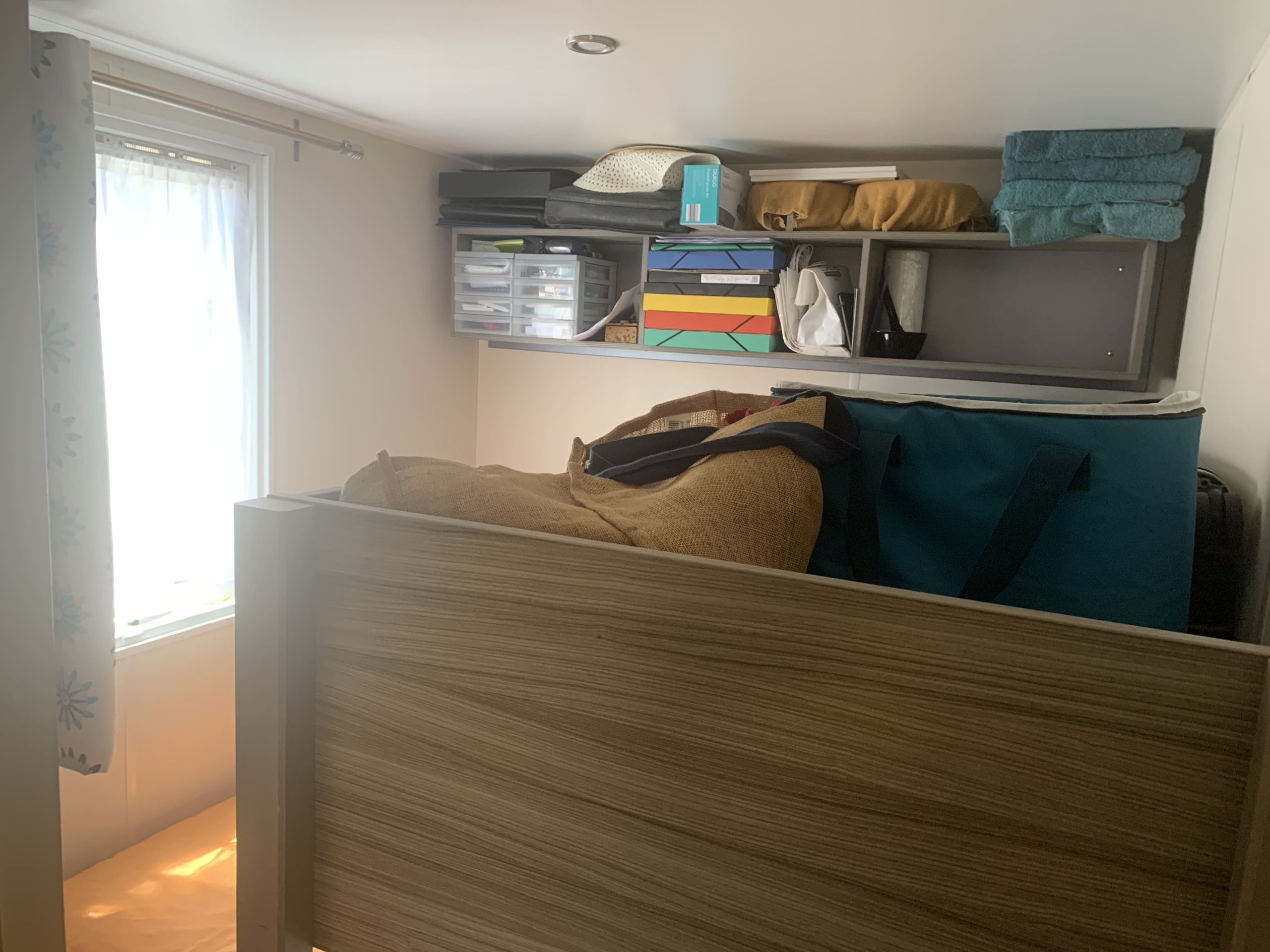 • Un dormitorio individual con una cama individual y espacio de almacenaje.