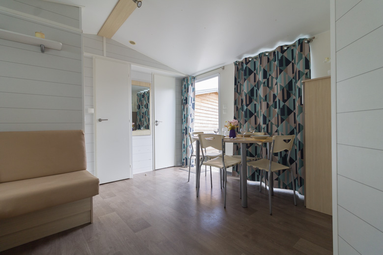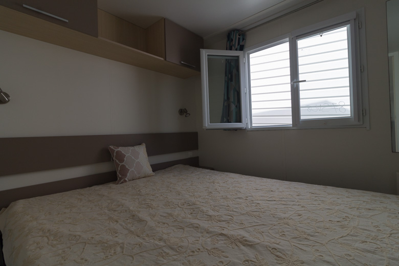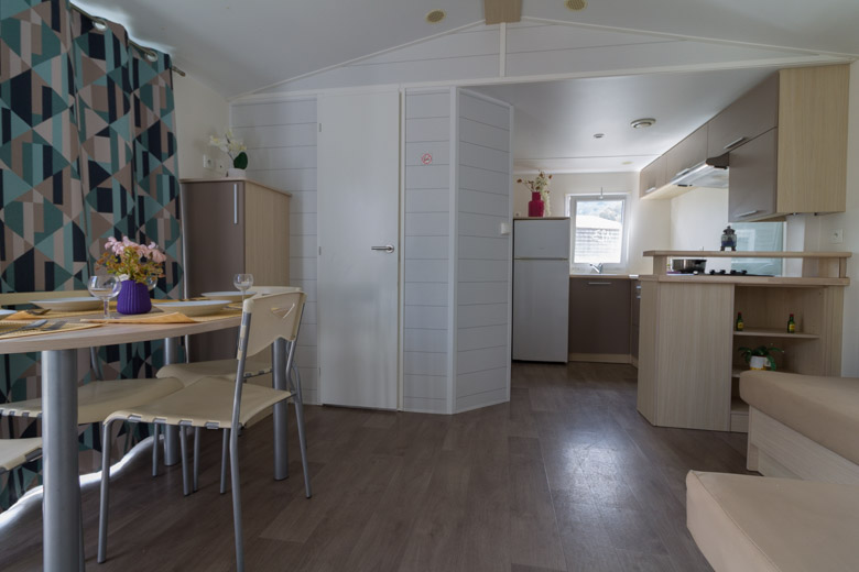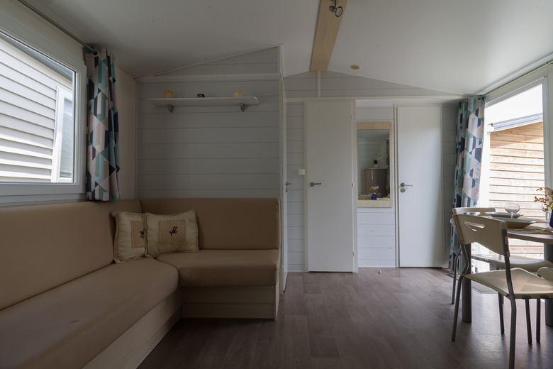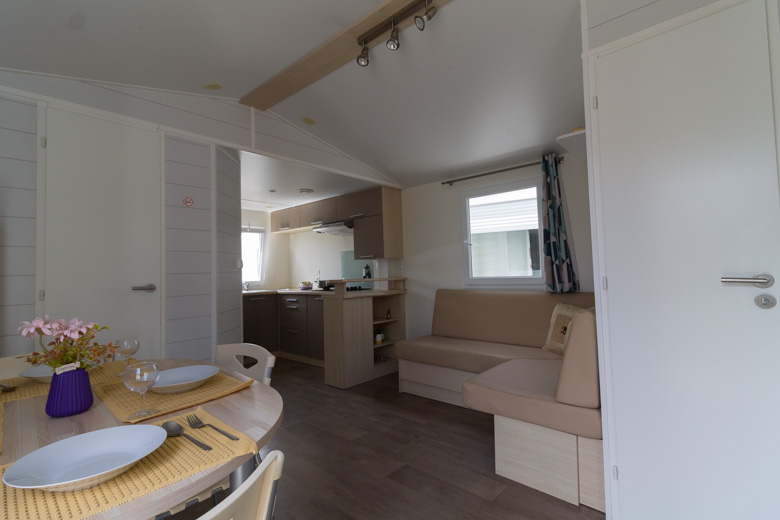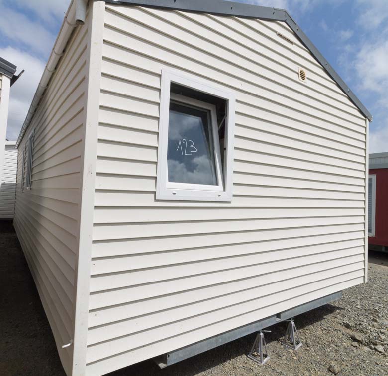 Bonita mobil home residencial marca Louisiane, modelo Savanah, con unas dimensiones de 8 x 4 m y una superficie de 32 m², ideal para disfrutar en familia o como segunda residencia.