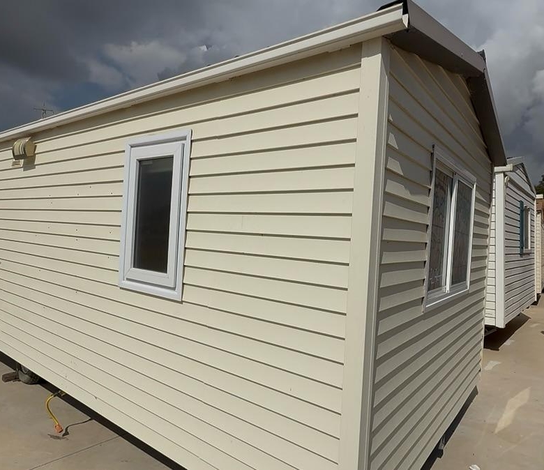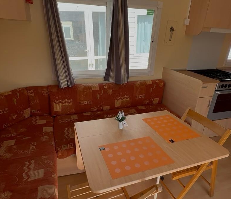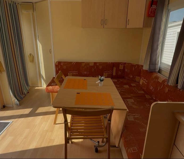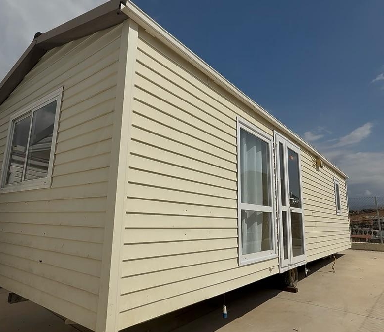 Casa mobil modelo SUN ROLLER VERONA, con toques modernos. Su superficie es de 26,2m2 (mide 8,70m x3m) En ella podemos encontrar un salón/ cocina muy bien distribuidos y amueblados, una habitación principal con cama doble, armario y cajonera, segunda habitación con tres camas y un armario, cuenta con baño completo en una sola dependencia.