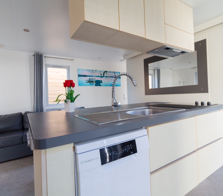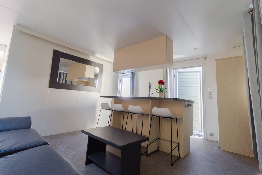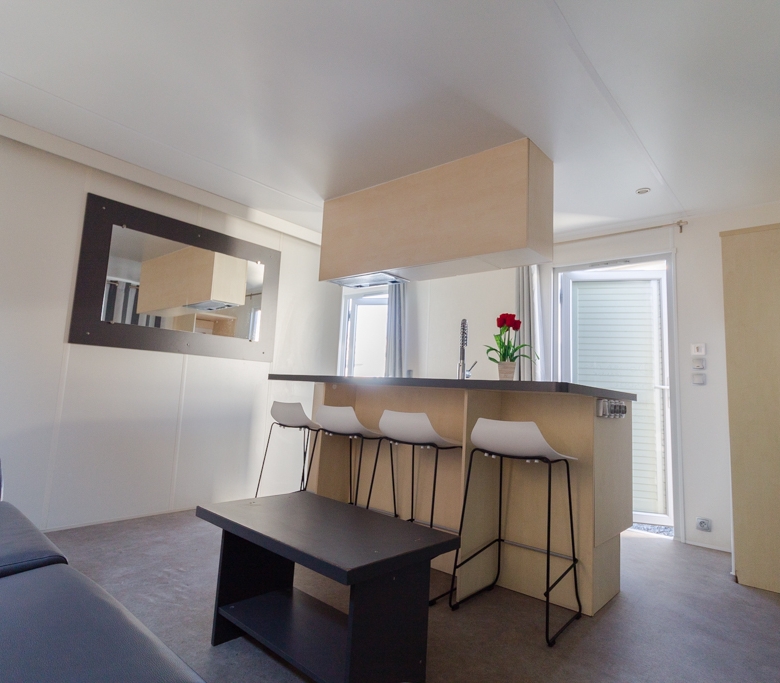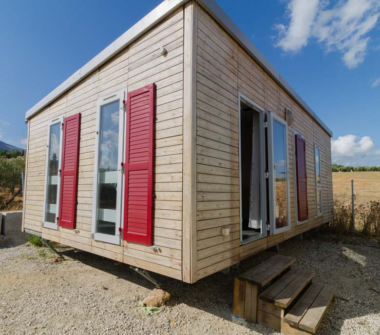 “Moderna y distintiva, una mobil home con diseño en forma de cubo y elegante acabado en madera.”