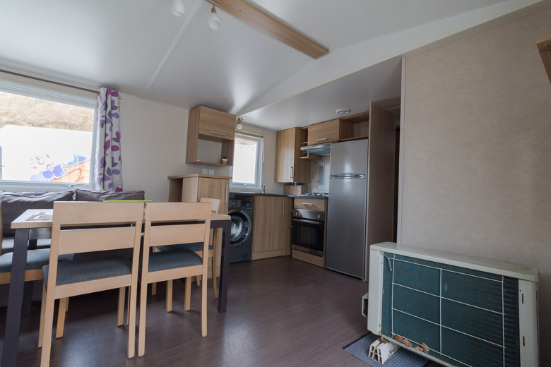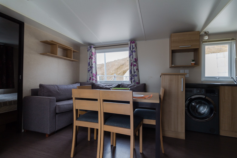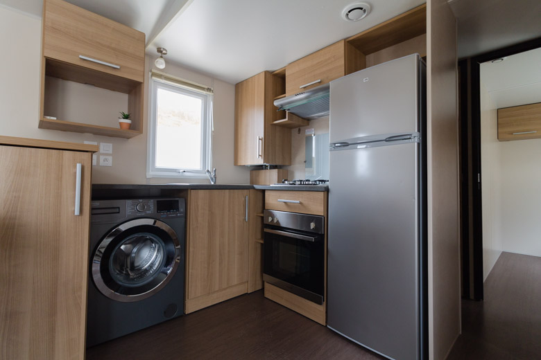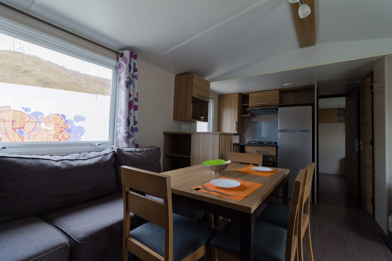 Elegante mobil home residencial marca Rapidhome, modelo Elite 100, con una superficie de 40 m². Su diseño destaca por la amplitud de sus estancias y una distribución pensada para ofrecer la máxima comodidad.