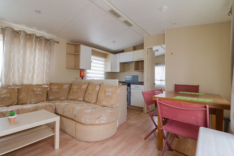 La mobil home dispone de dos baños completos, lo que garantiza comodidad para toda la familia. Cada baño cuenta con ducha y sanitarios, aportando practicidad y una mejor organización de los espacios.